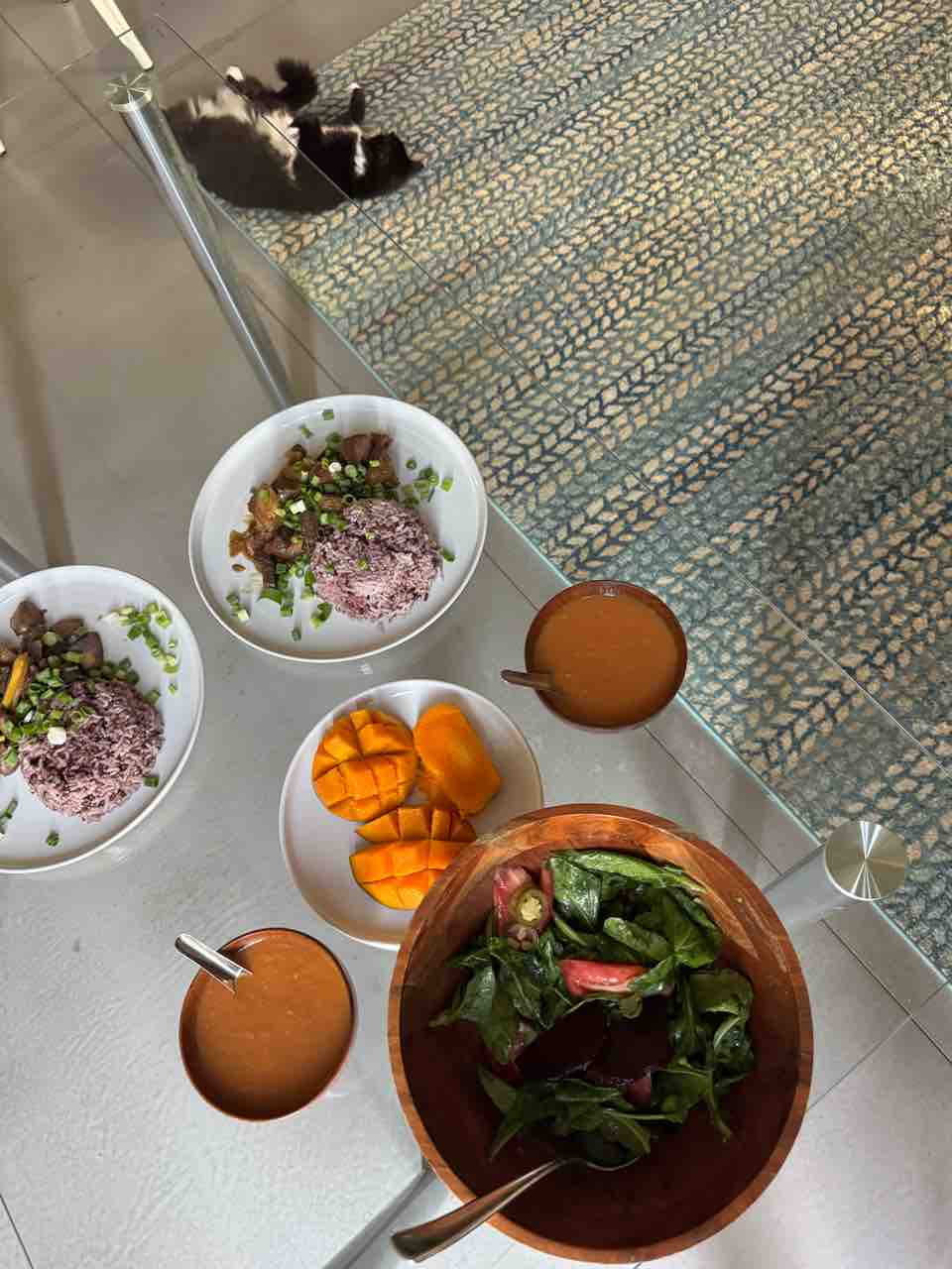 スイカの白いところと生姜、紫にんじん、玉ねぎのココナッツポタージュ。