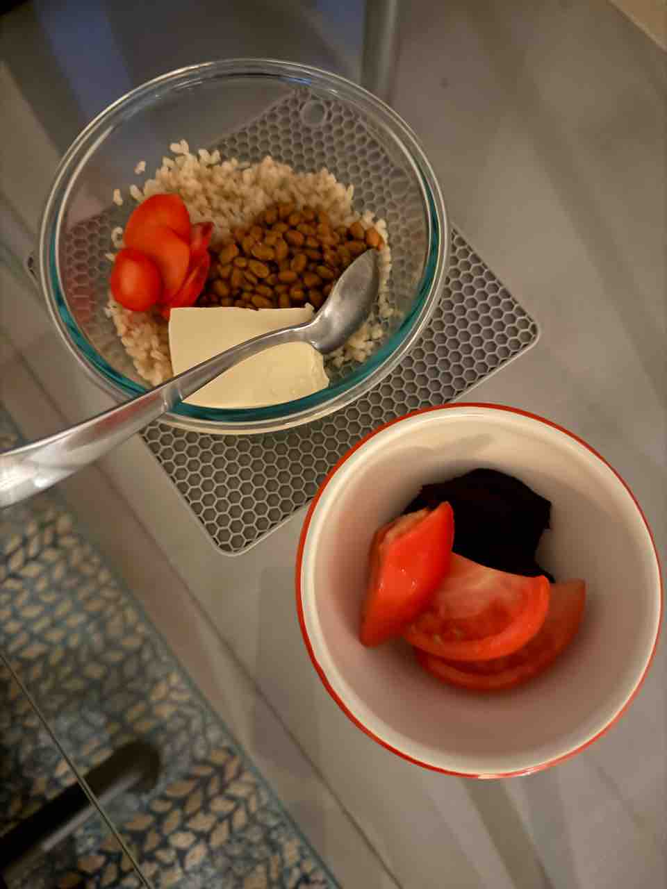 朝は納豆ごはんとお豆腐、トマトとビーツ!
