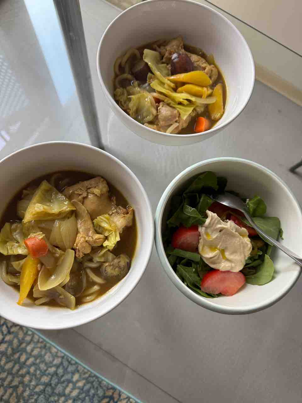 さて、ディナーはご近所さんに何故かいただいたカレー鍋。