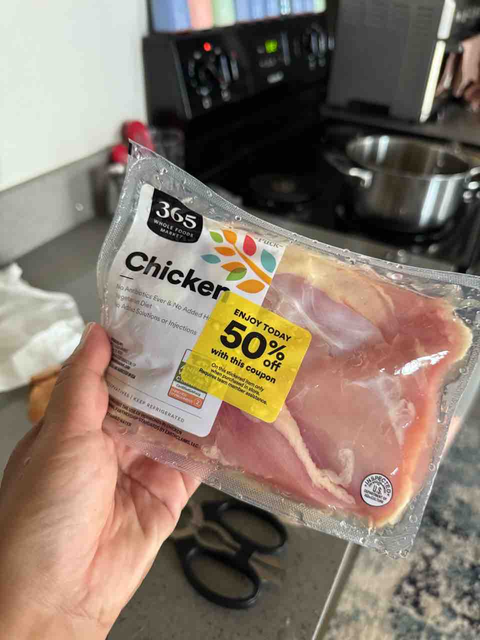 ホールフーズの50%オフチキンを入れるよ!