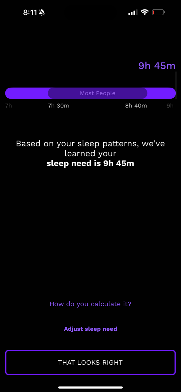 でも流石に9時間45分も寝てられないので9時間ぐらいにアジャストしておいた(アプリが計算した意味あるんか?)。