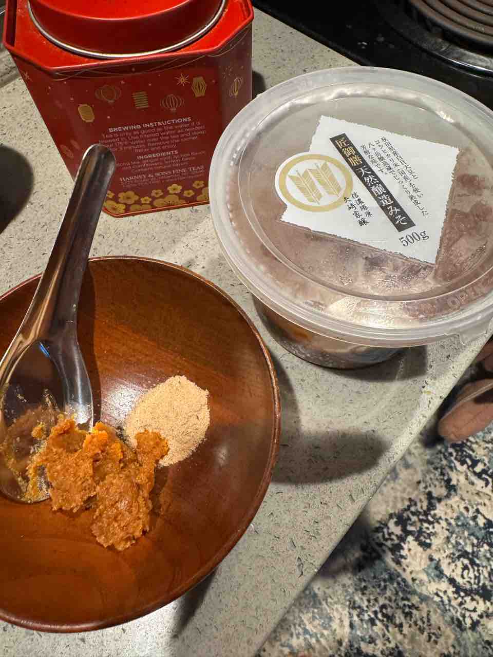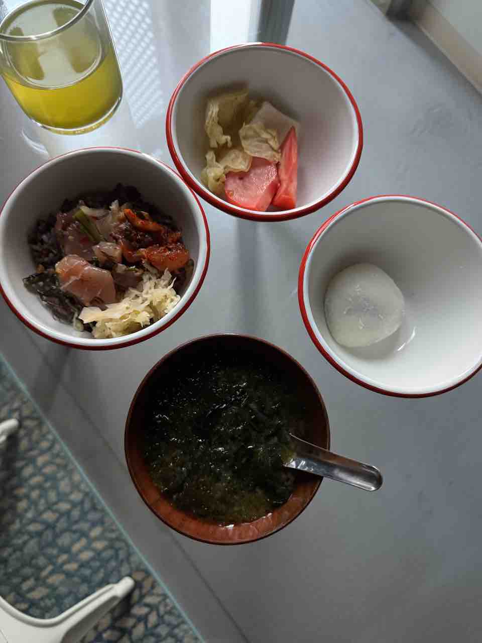 朝のお味噌汁は手抜きでお椀にお味噌と出汁パックの中身を入れてお湯を注ぐだけ!