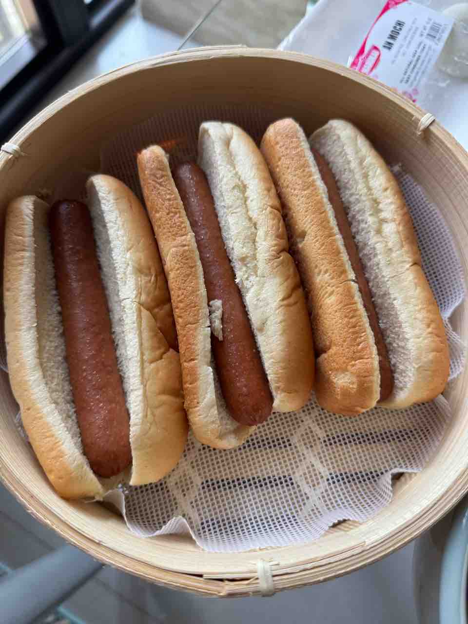ホットドッグ、蒸したらパンがふわふわになって美味しかった〜!!!