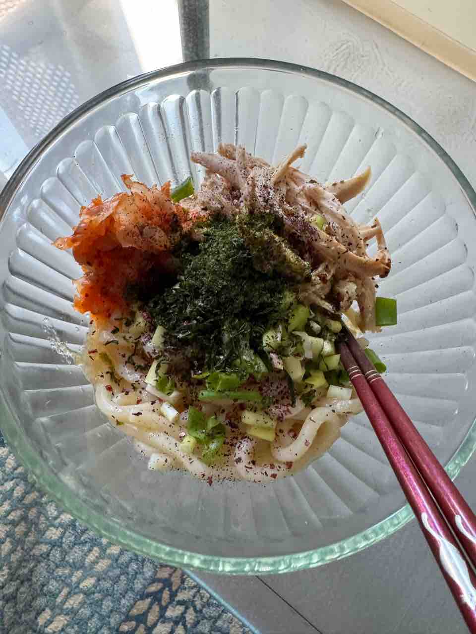 載せたあおさと、前日の残りのロティサリーチキンが美味しい〜〜〜