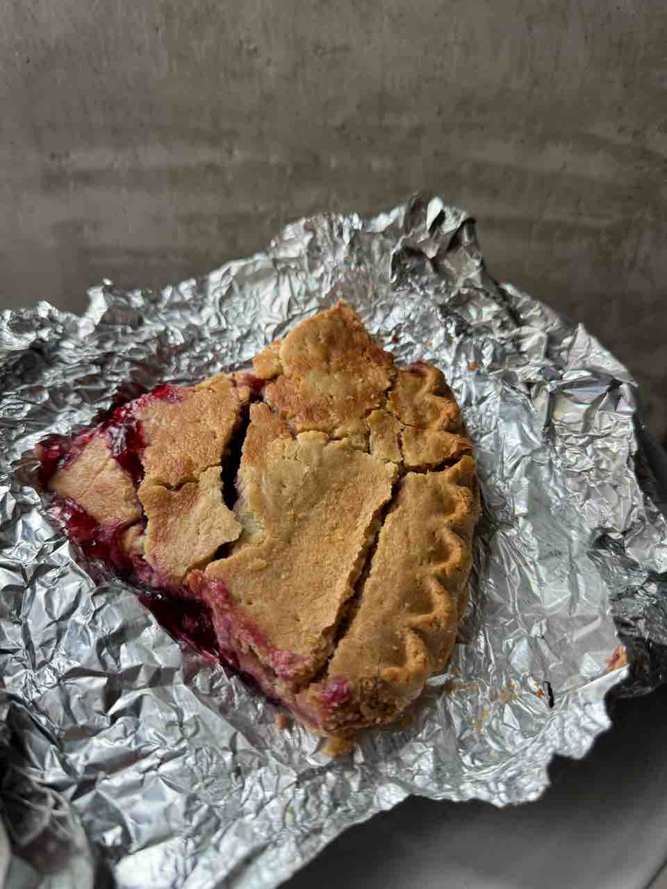 食後にチェリーパイ。冷凍庫にいーっぱいありますのでね🥧