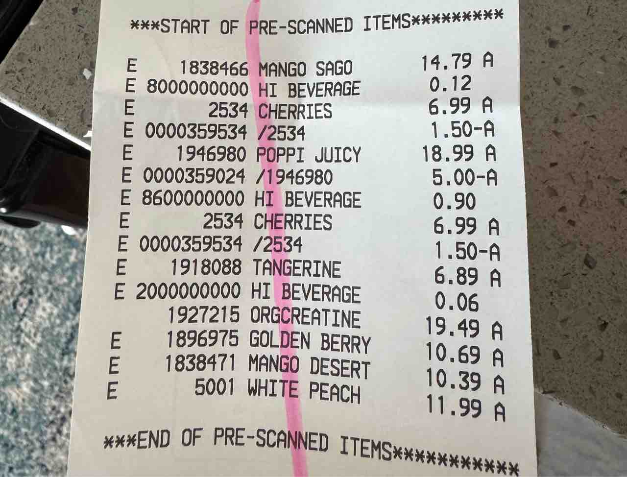 こちらレシート。個々のお値段はこちらをどうぞ。