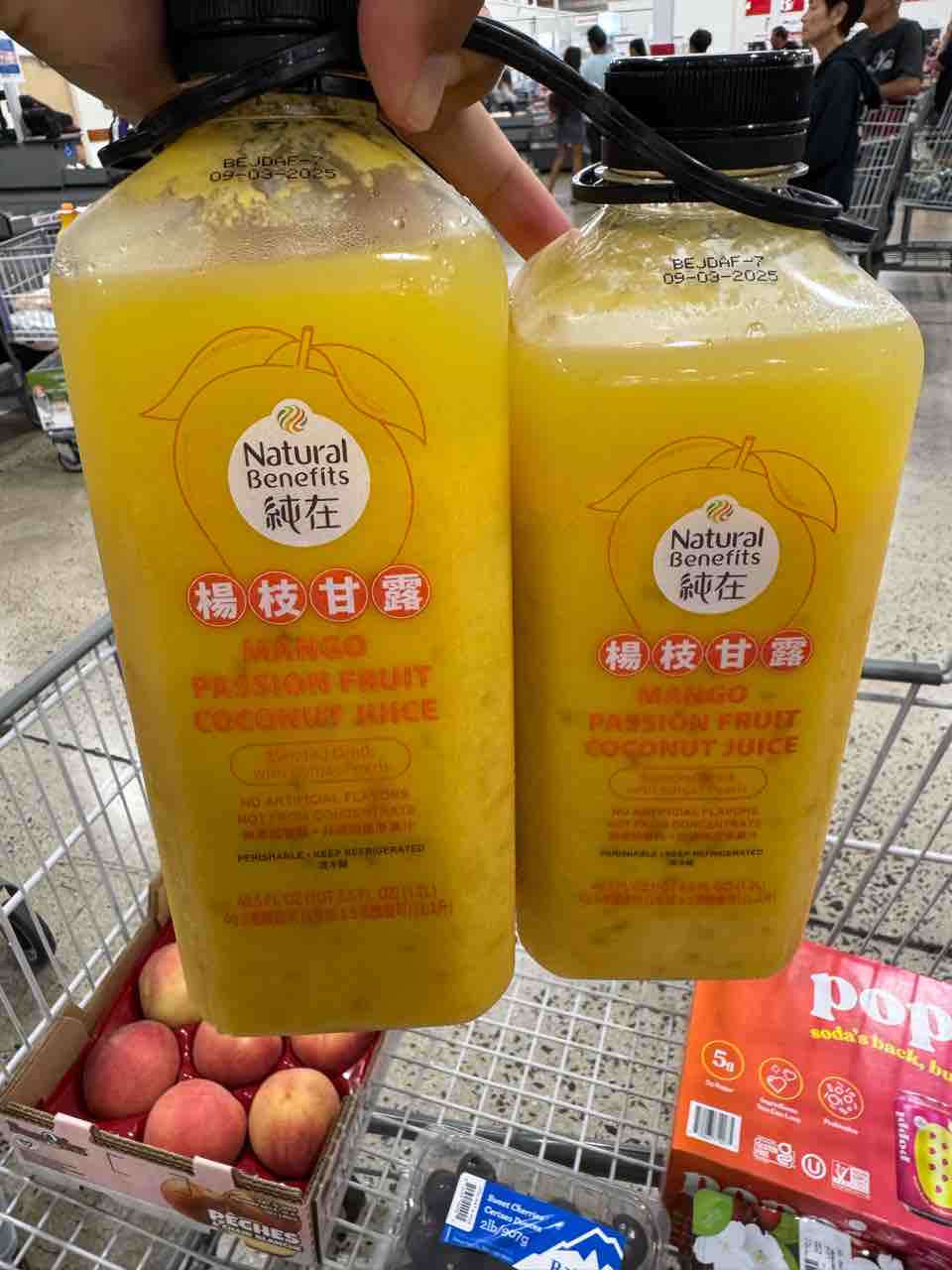 夫のマンゴージュースとチェリー。