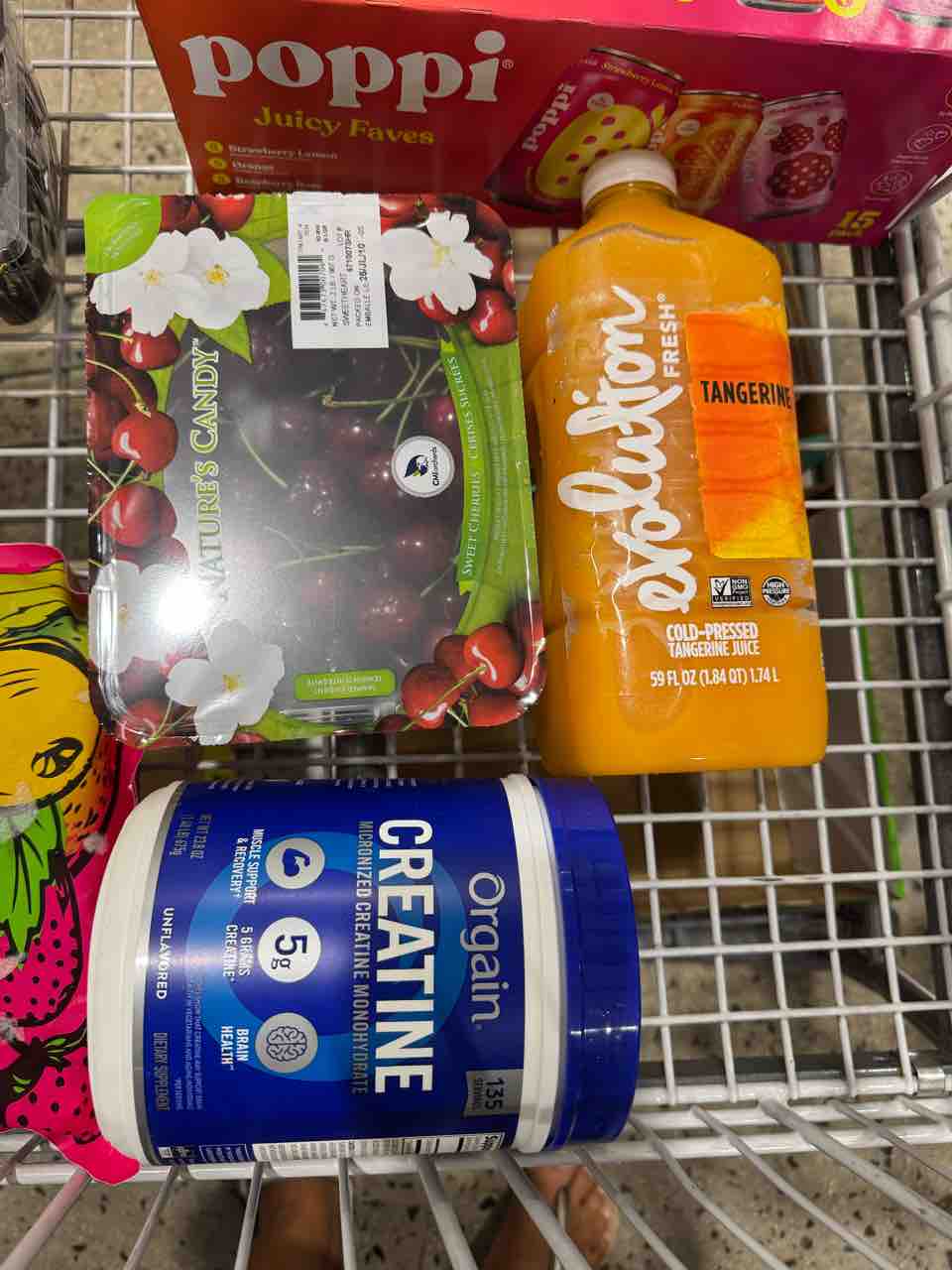 夫のみかんジュースと、違う種類のチェリー、クレアチン。