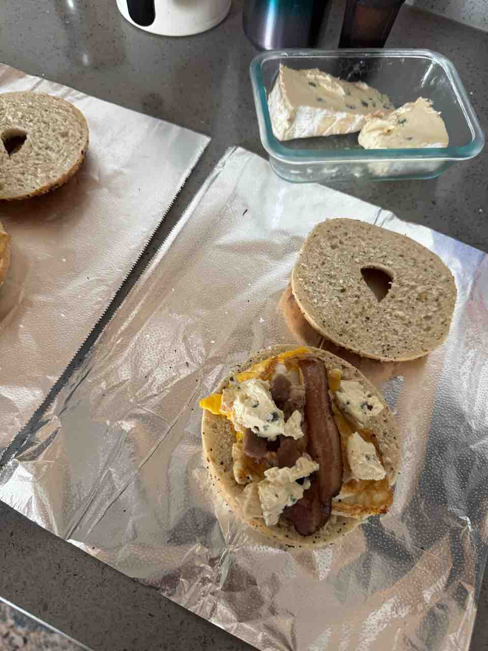 パスチャーレイズドの卵に、ベーコン、それからブルーチーズ😝