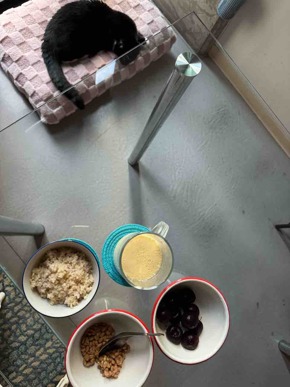 朝は玄米と納豆、チェリーに茶碗蒸しもどき!