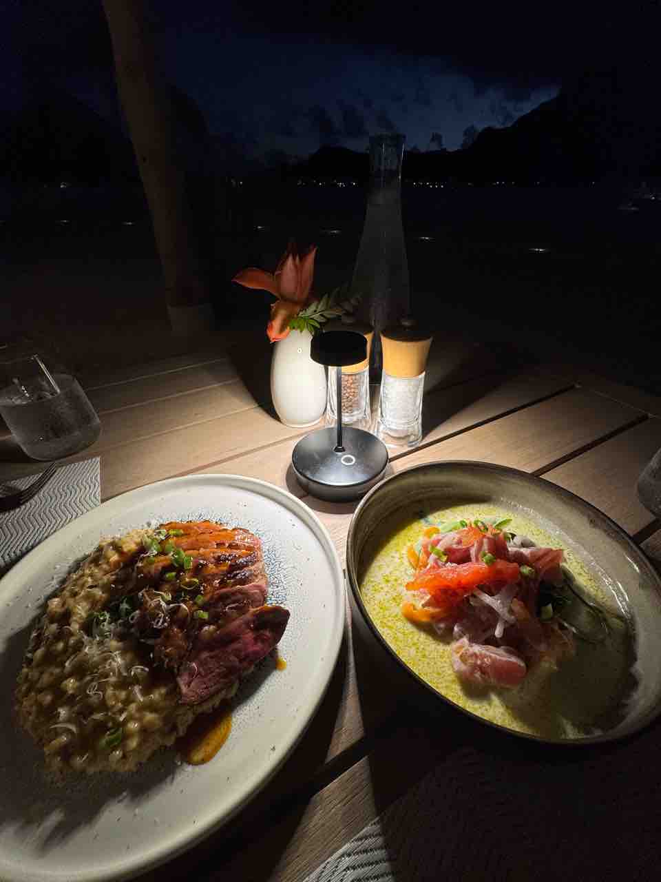 ポワソンクルー(タヒチのポケ)に、ダックとマッシュルームリゾット😻