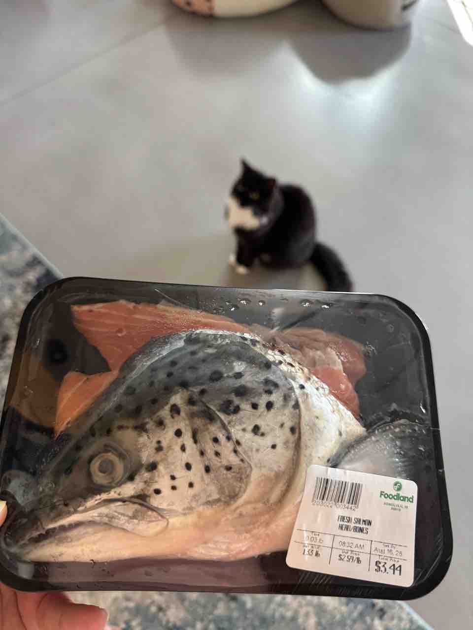でもこのサーモンは3ドルでカマとか食べれてとってもお得だよね👏