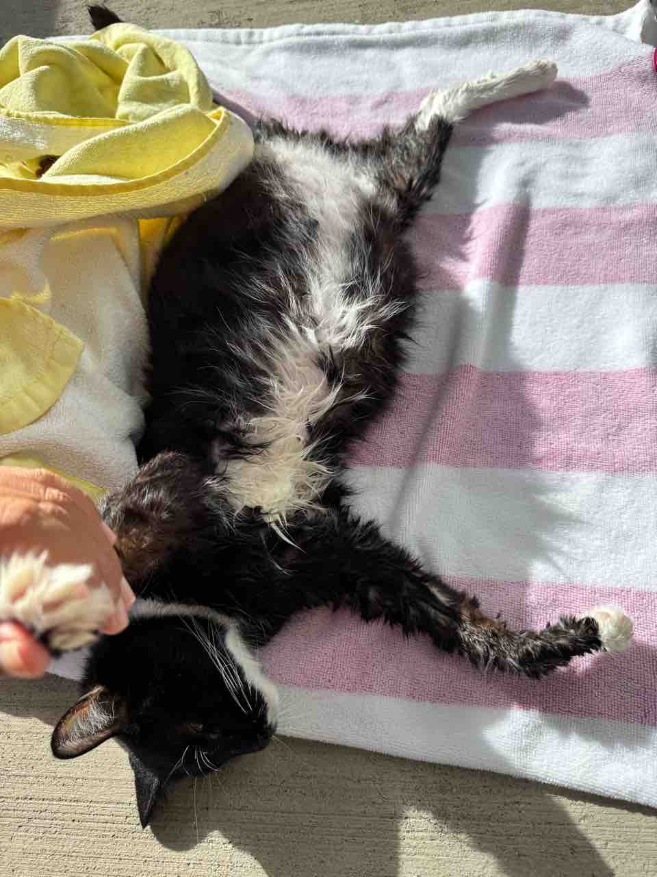 毛繕いもできないのでお風呂で洗って、日向で乾燥。
