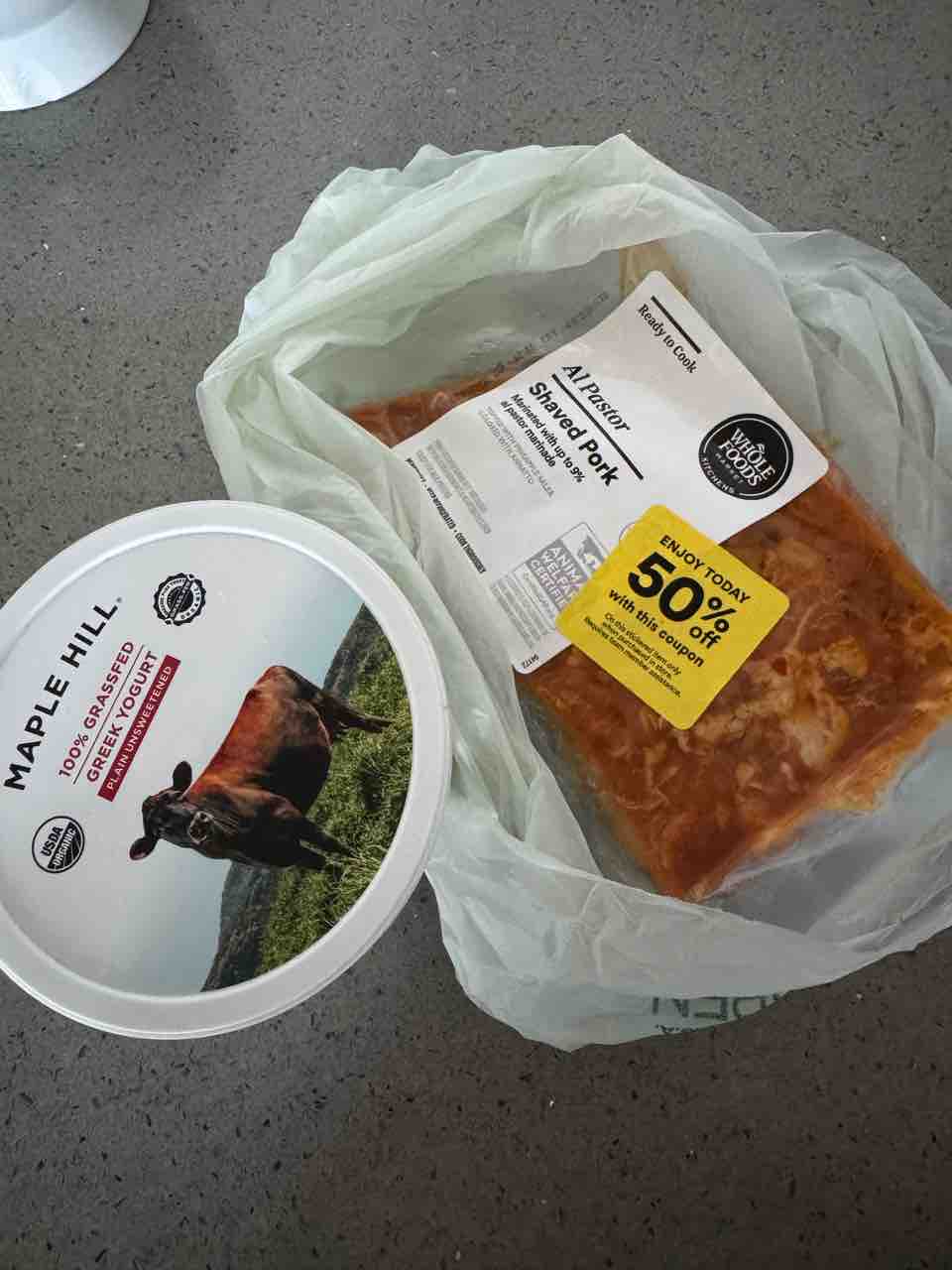 とりあえず半額のお肉と、ギリシャヨーグルトを購入。