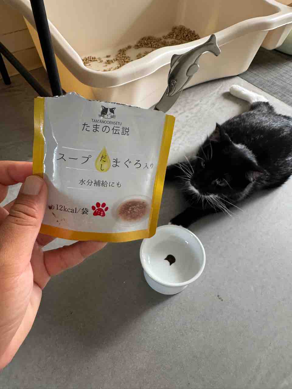 もうあまり食欲のなくなってきているたま様だけど、日本で買ってきた「たまの伝説」食いつき良し!