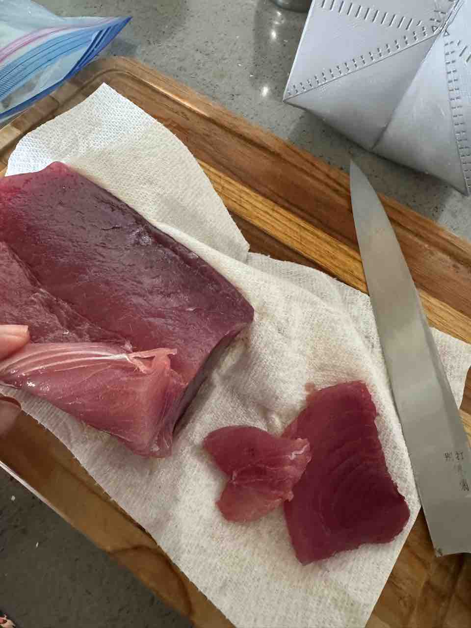 タマ様、お刺身食べるかなって思ってお魚屋さんでマグロを購入。