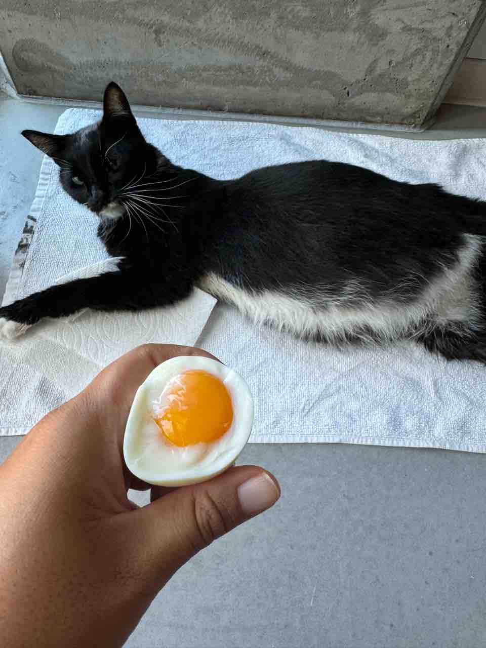 チュールも半熟ゆで卵も、ギリシャヨーグルトもタマ様は食べれず。