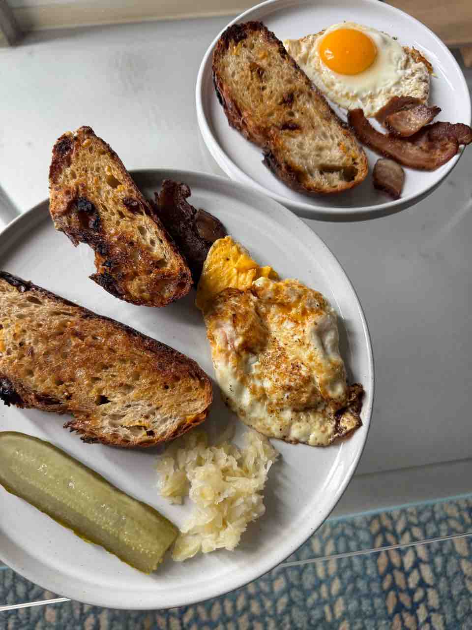 ランチはサワードウに卵とベーコン😆