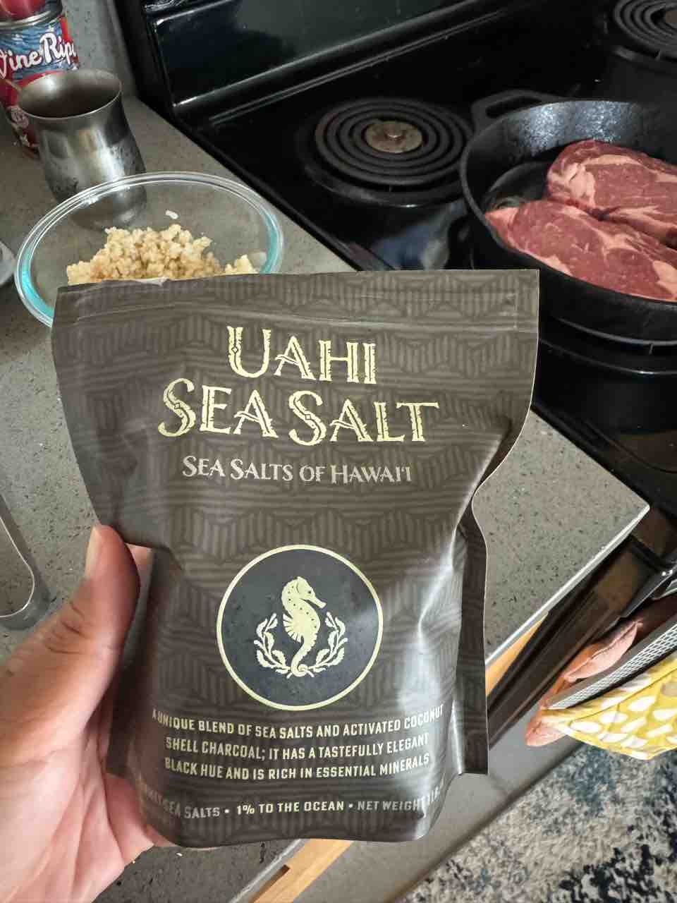 ココナッツの炭を使ったお塩でスモーキーに仕上げます。