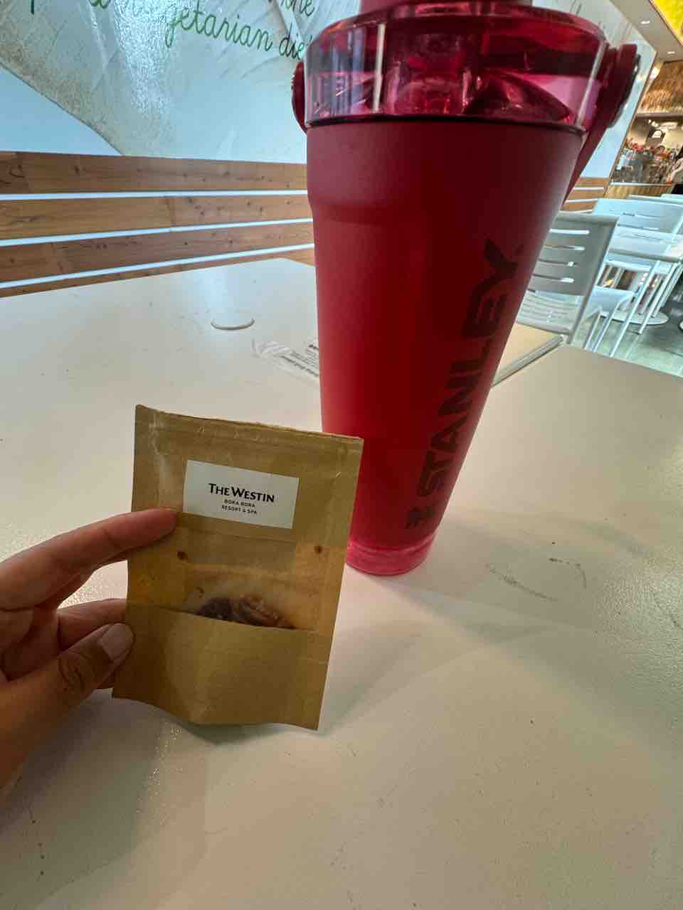 ランチタイム。プロテインに加えてドライフルーツとナッツも少々。