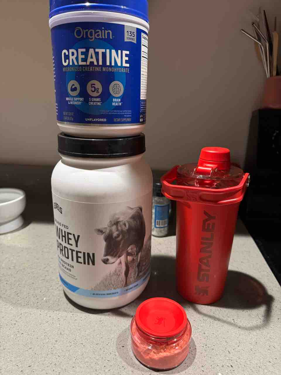ランチはクレアチンとプロテインを詰めていくよ〜!