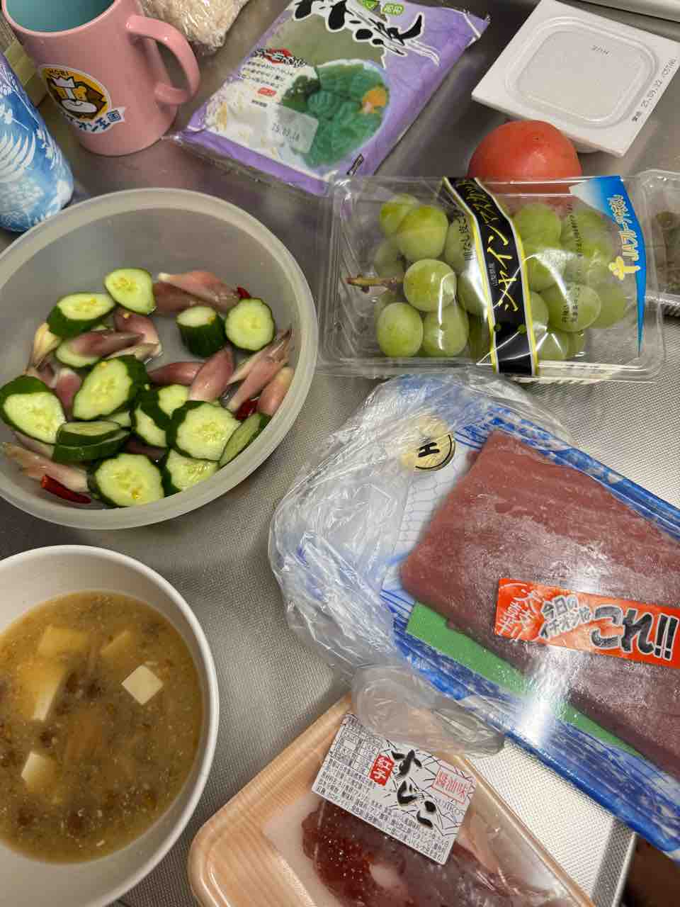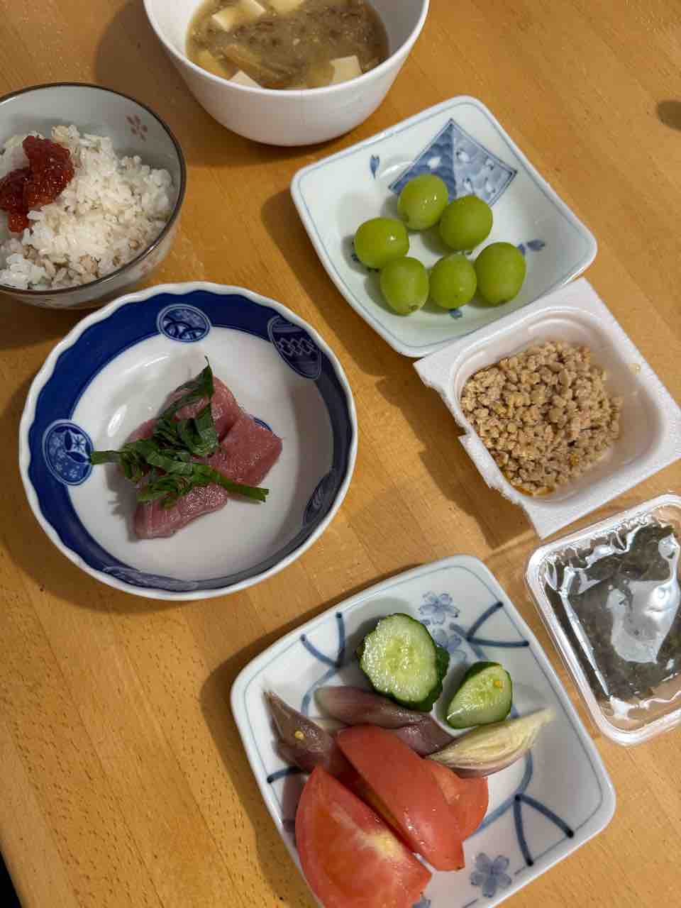 朝はグリーンスムージーを夫に作って、それをチョイともらう。