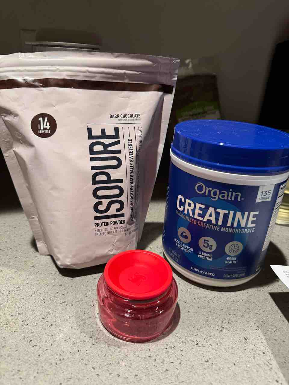 ランチにはプロテインとクレアチンをお仕事に持って行きます。