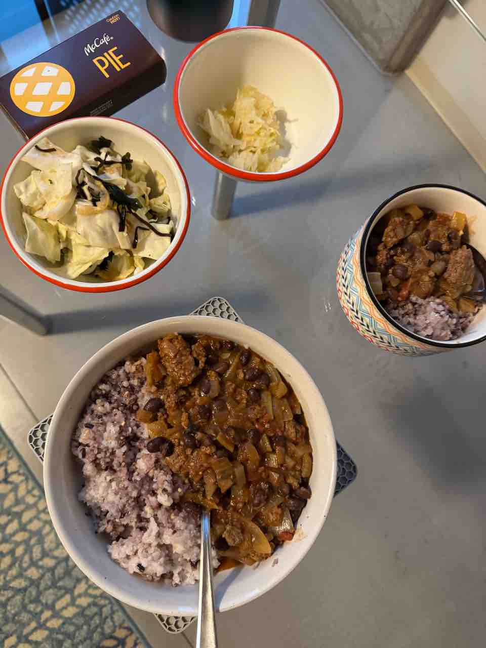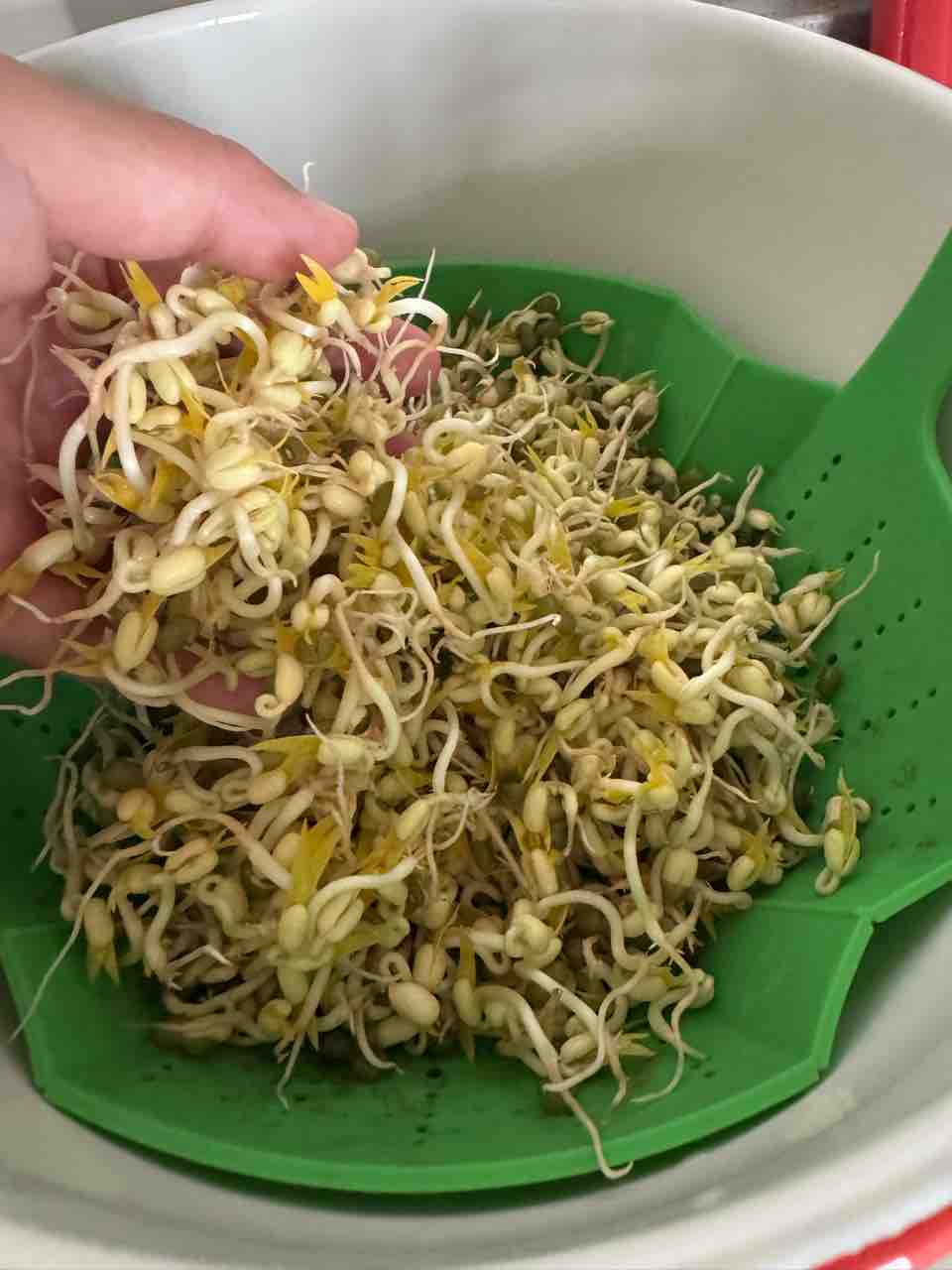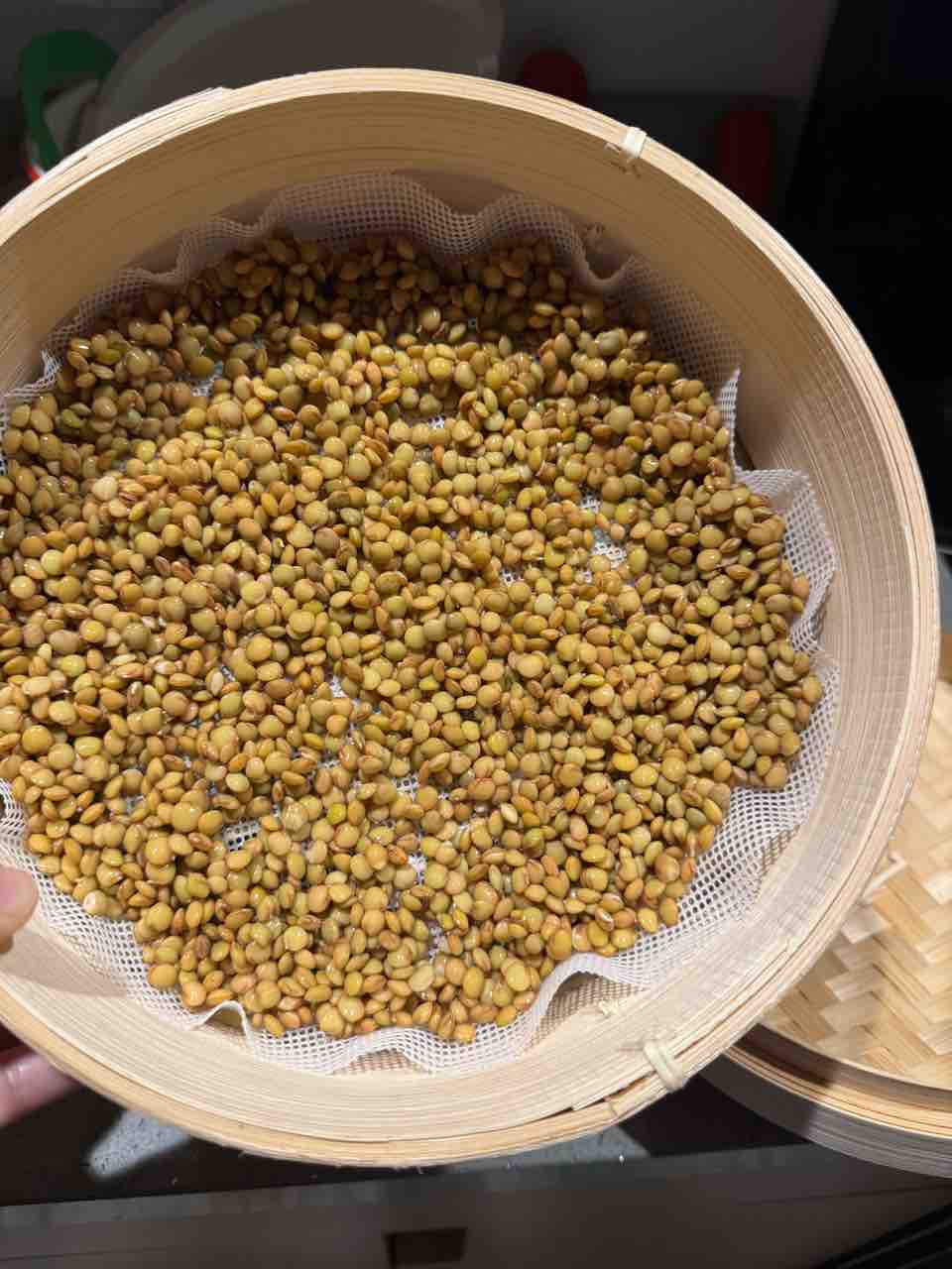 あとは夜、ちょろっと発芽させたレンズ豆を蒸しました!