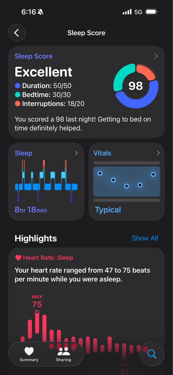 夜は9時にベッドに入ったら、アップルウォッチのスリープスコアで98を叩き出してしまった👏
