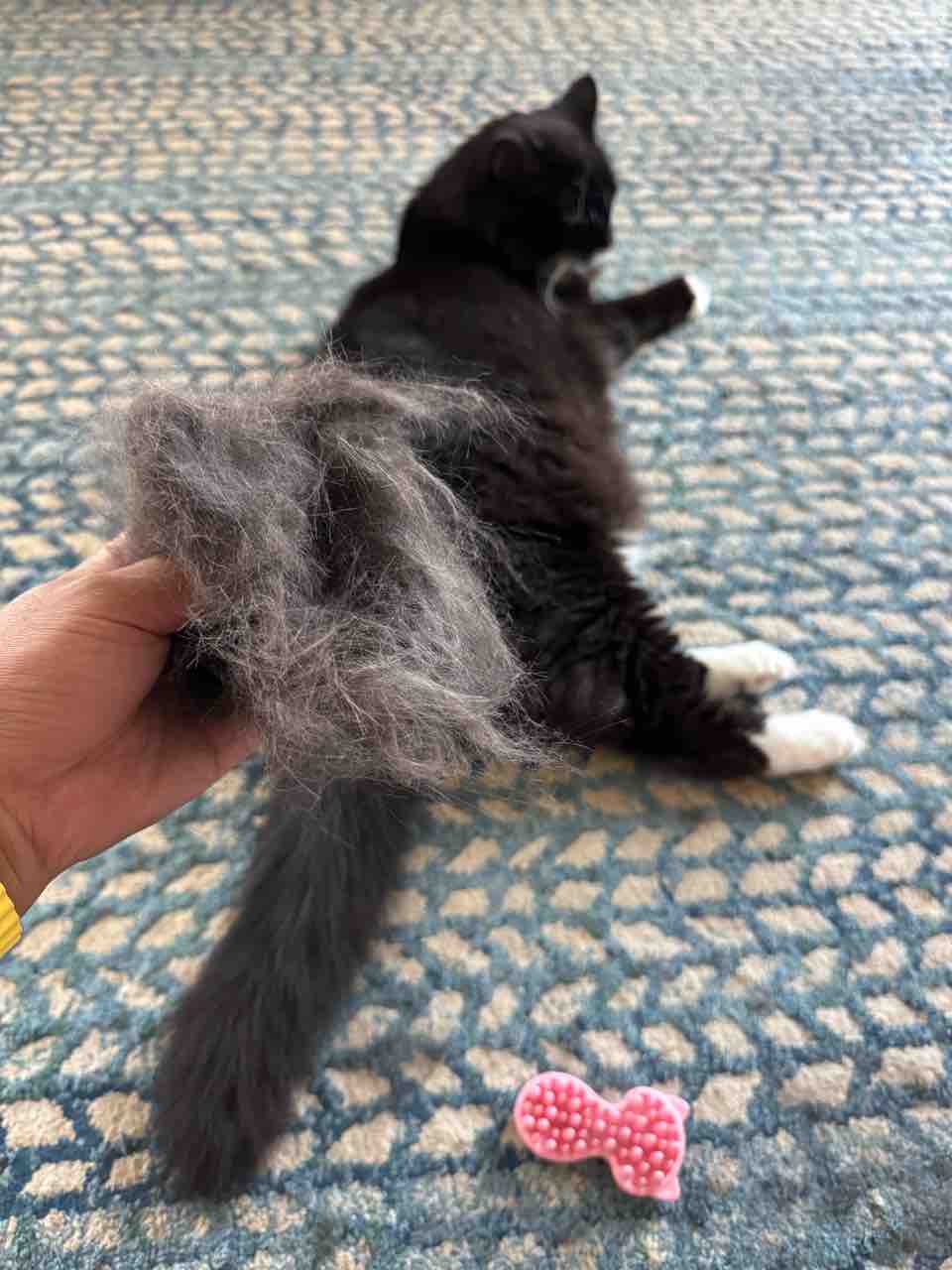 チキンを食べたいポチ様の気を紛らわすためにブラッシングしたら、すごい抜けた。スッキリ!