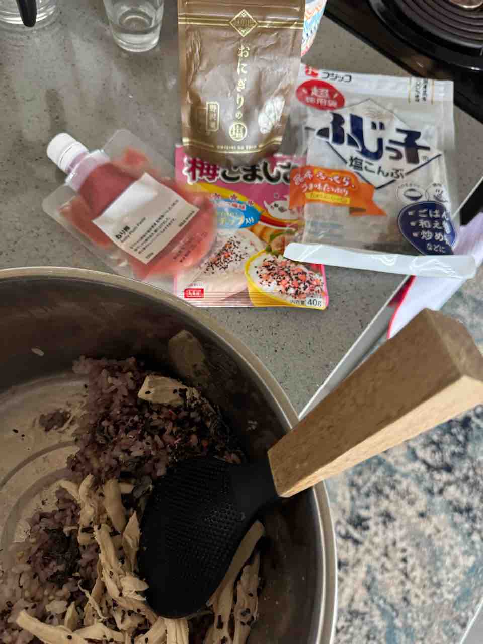 蒸し鶏を混ぜ込んだおにぎりにしよう〜!