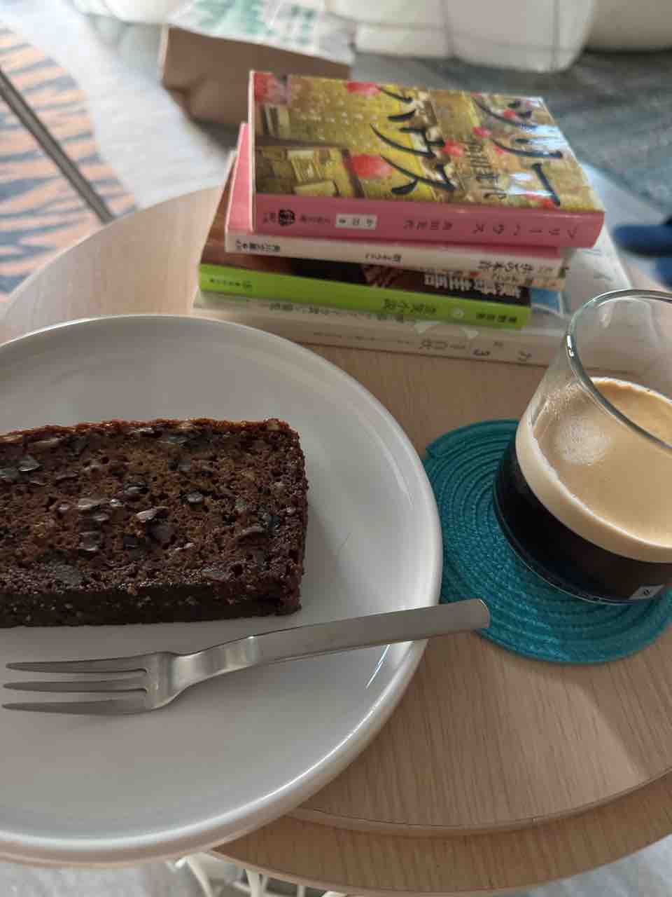 で、アイス食べたくせに、夜のディカフェコーヒーとバナナケーキで読書タイムよ。