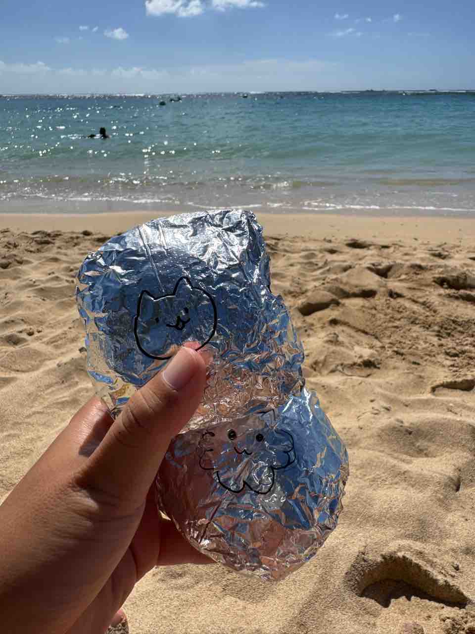 ビーチで食べるおにぎりは美味しいねぇ。