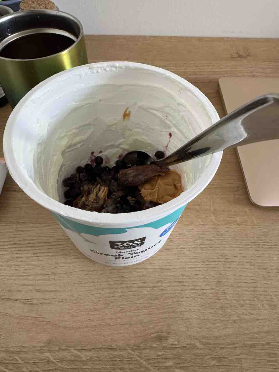 洗濯とガーデニングを終えて、腹ペコだったのでノンファットのギリシャヨーグルト。