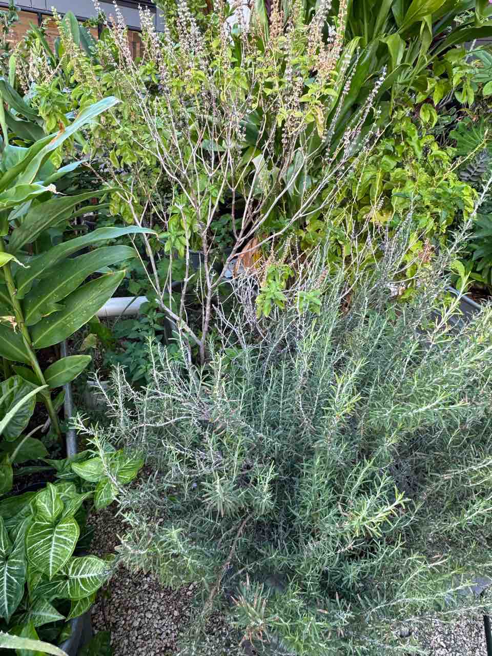 ローズマリーとバジルを掻き分けて行った1番奥に紫蘇が元気に生えてるんだけれど、そこまで到達できず😂