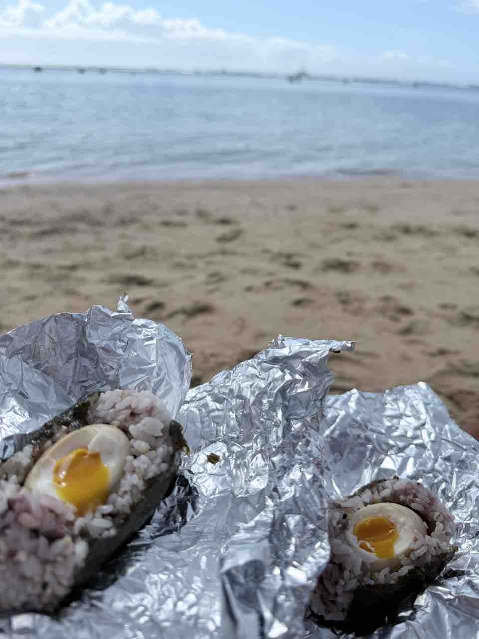 カカアコにある、ゆで卵おにぎり屋さんAJITAMAを真似して作ってみました。