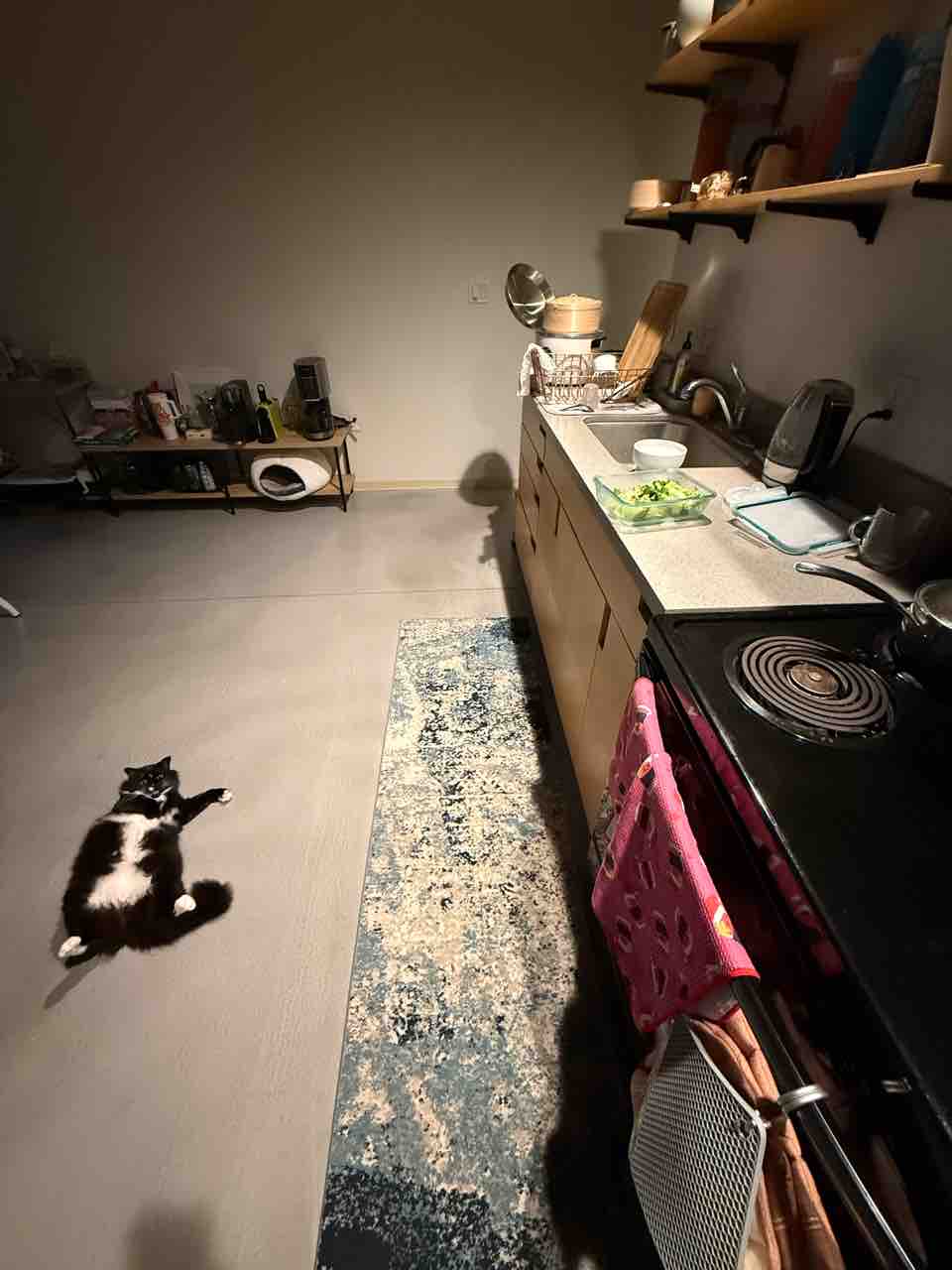 キッチンに立ってる時、後ろにポチ様が落ちてるの可愛すぎる。