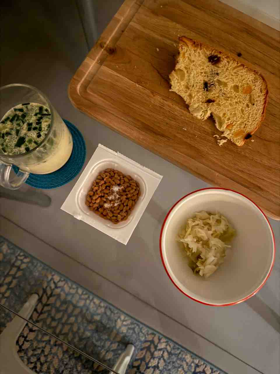 納豆とネギ入り茶碗蒸しで脂質とタンパク質。