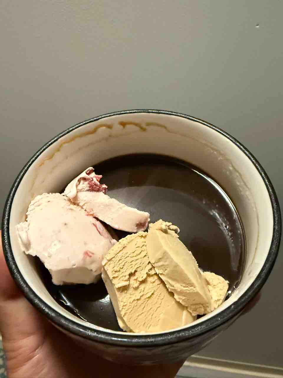 夜のデザートはコーヒーゼリーに、ハーゲンダッツのコーヒー味とストロベリー味!