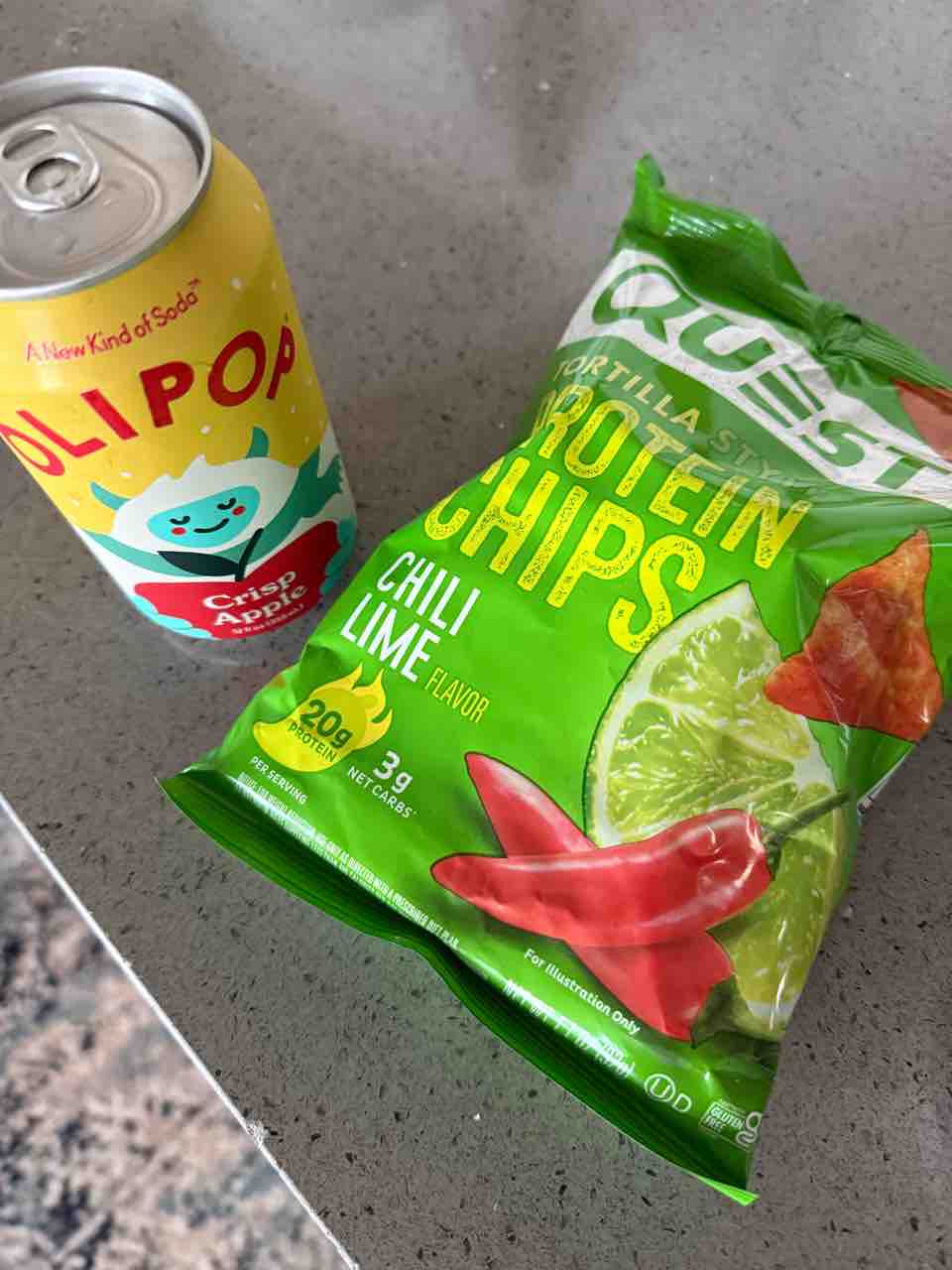 ファイバーたっぷりのヘルシー(?)炭酸・OLIPOPとプロテインチップスを食べたら満足しました。