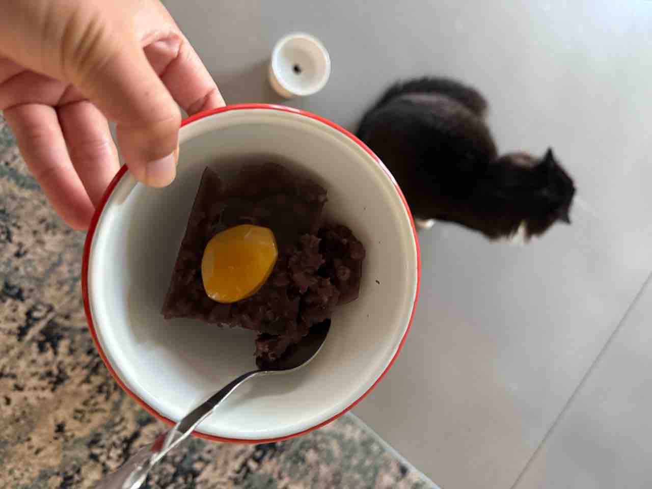 おやつには味付けなしの小豆ゼリーに、栗きんとんを1つ。
