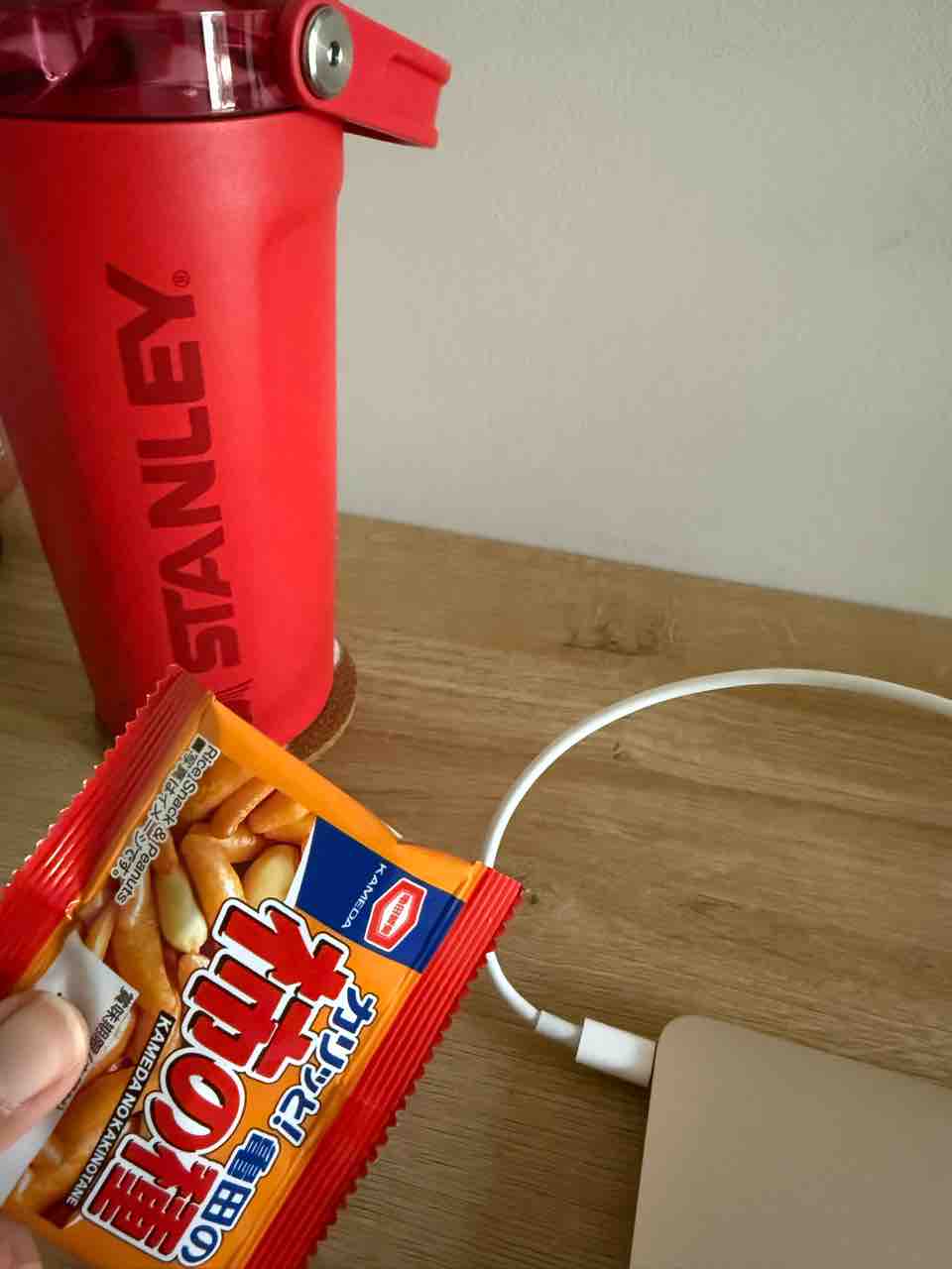 帰ってきてからアイス抹茶と柿の種。