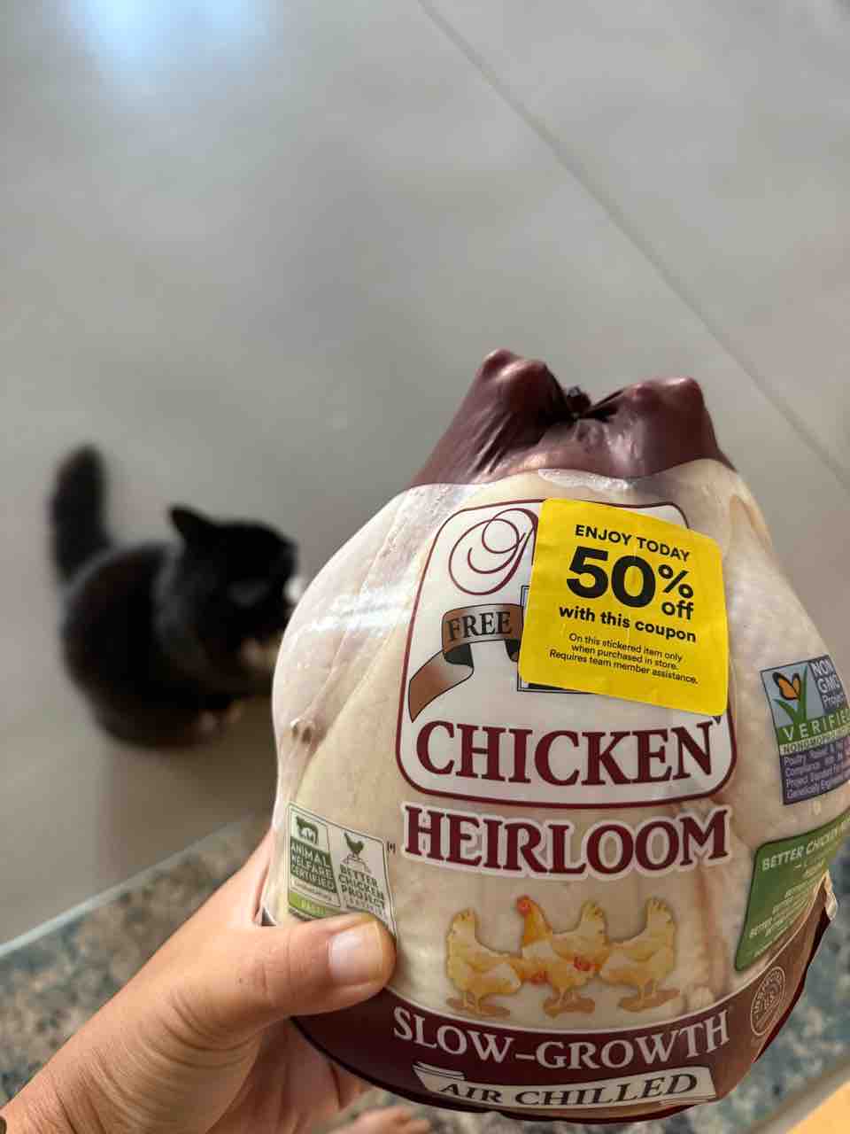 丸鶏はただ蒸しただけで猫様とシェア(人間は食べる時にポン酢とかかける)。