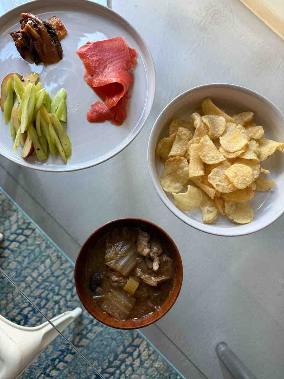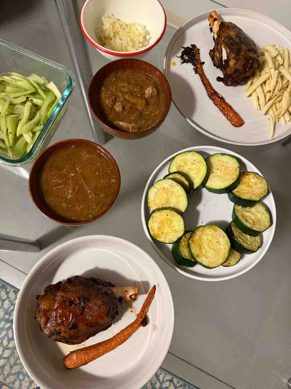 それにズッキーニ、ザワークラウト、味噌汁、セロリ。