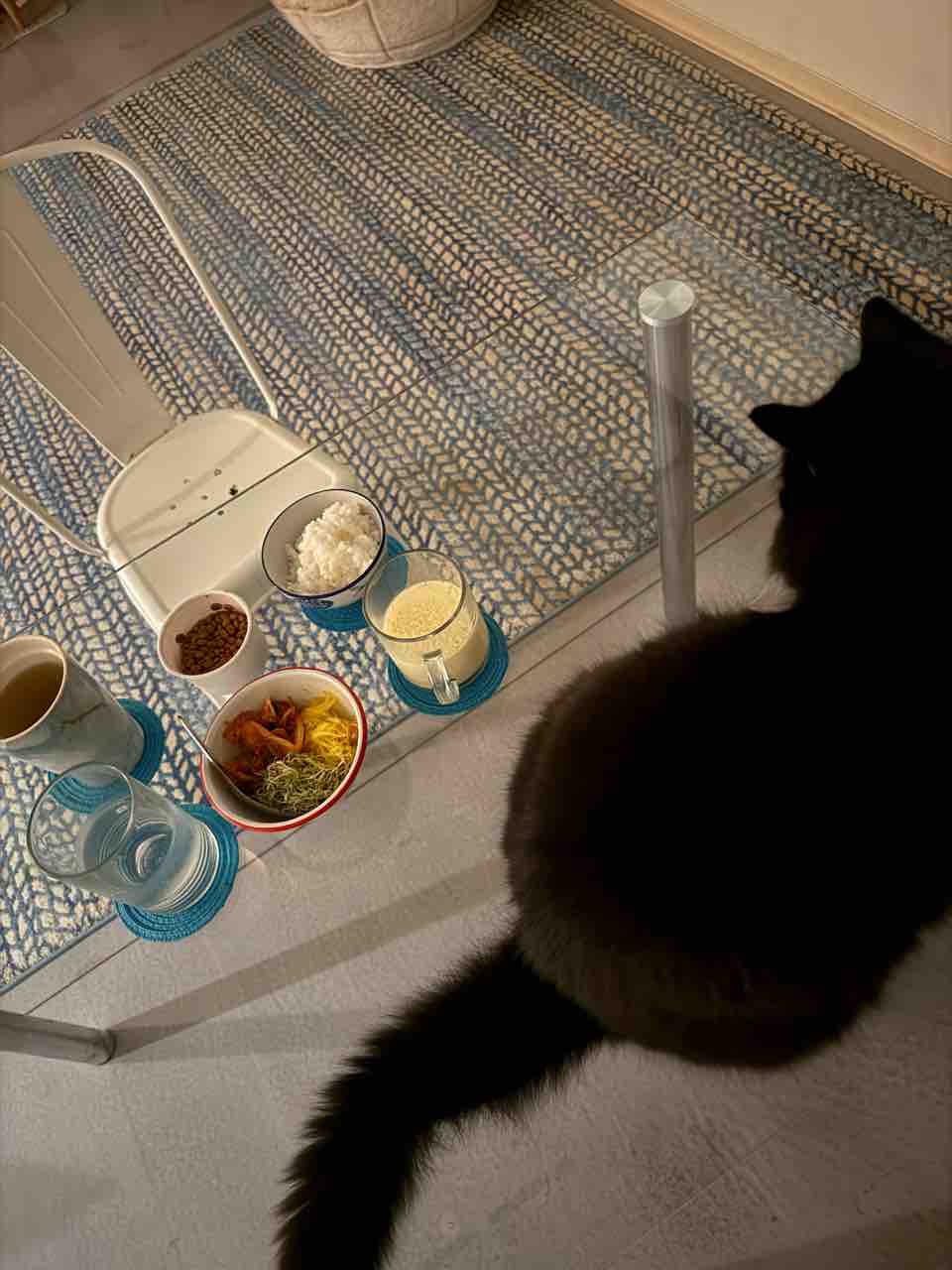 なんか知らんけど、ここ最近、朝ごはん時にポチさんが見守っててくれて可愛い。