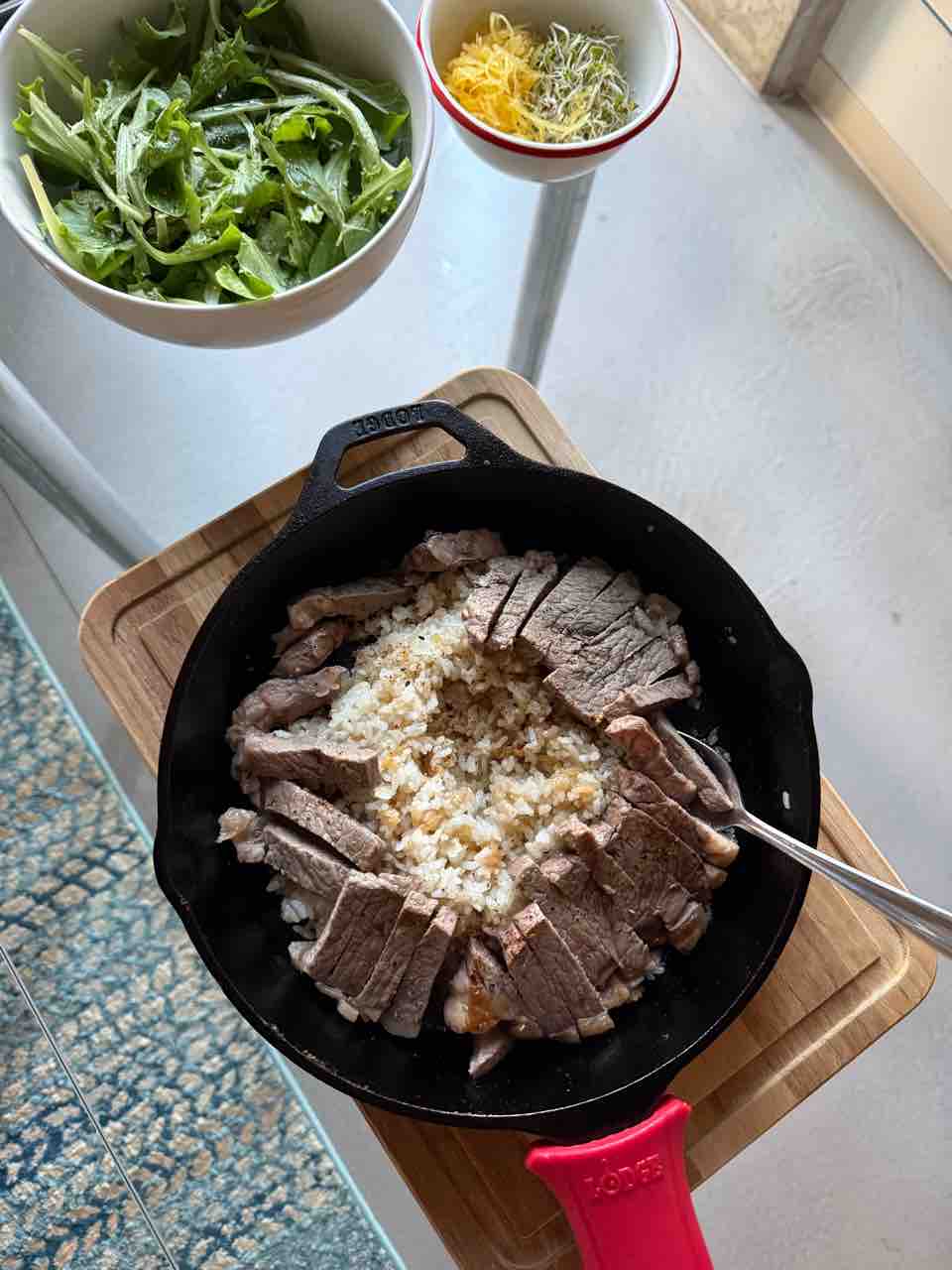 夜ご飯は、夫が牛肉とご飯をもらってきたので、それを焼いて食べました!