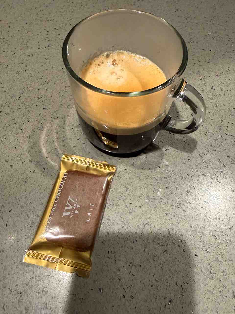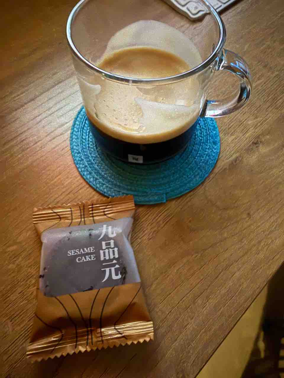食後にディカフェのコーヒーと、台湾の黒胡麻のお菓子。