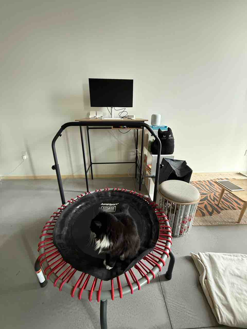 昨日、スタンディングデスクを移動させてきましてトランポリンの前に設置したのだけど、これが良いのなんの…!