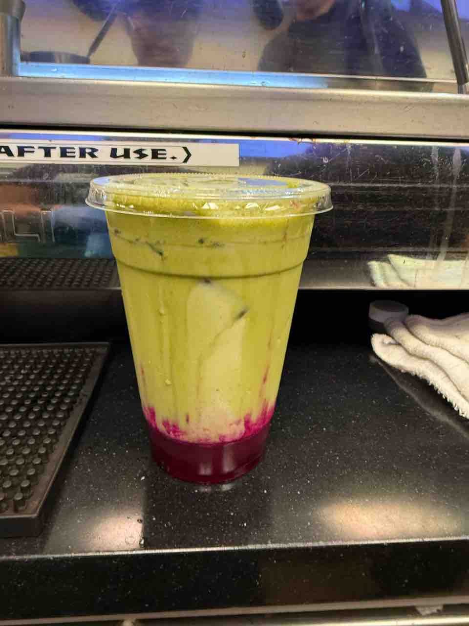 新商品のピタヤ(ドラゴンフルーツ)抹茶ラテを作る練習をしたので、ドリンク一杯もらいました😏