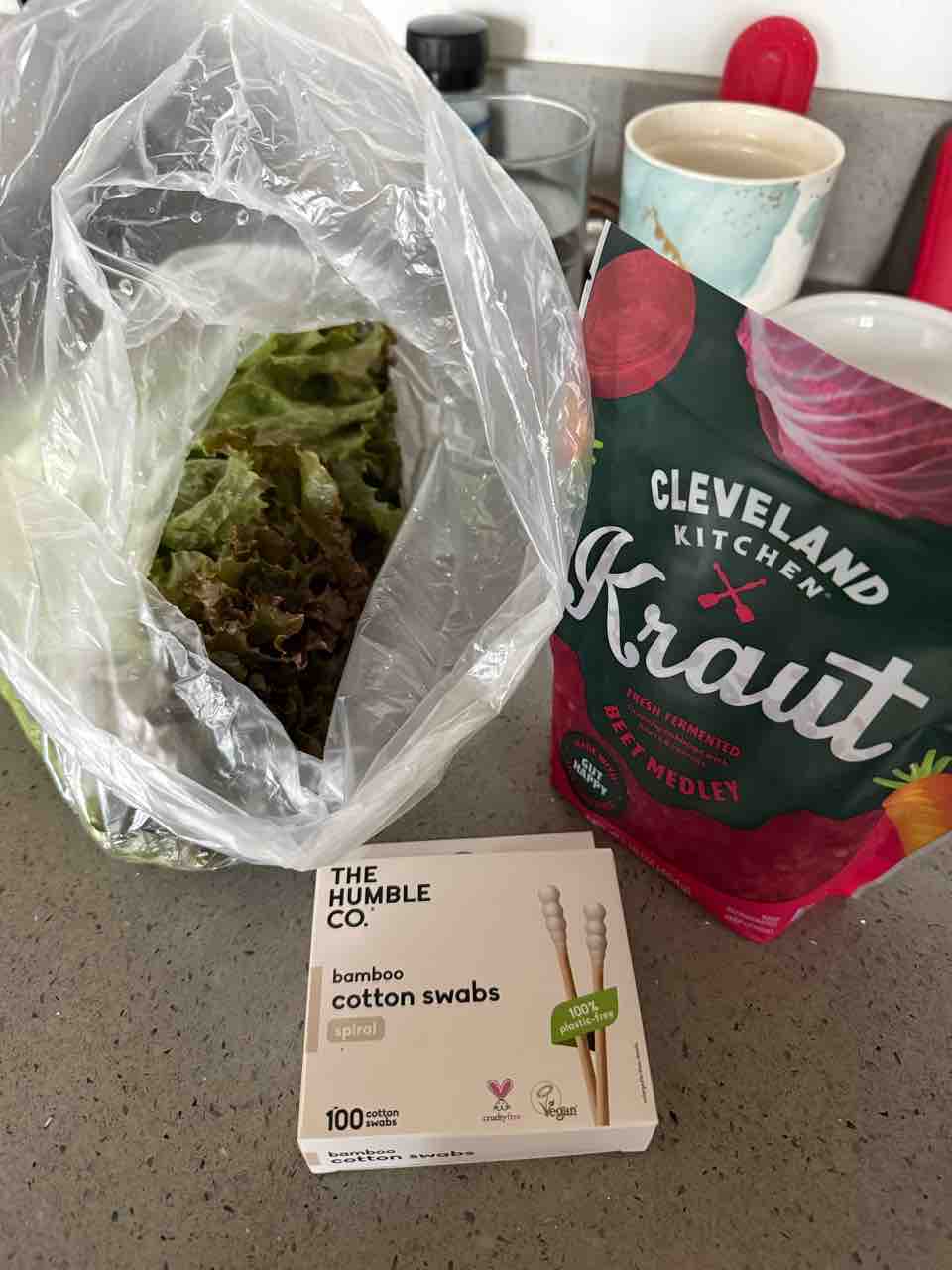 白米150gに、お豆腐と、糠漬け、ザワークラウト。バタフライティーのお茶!